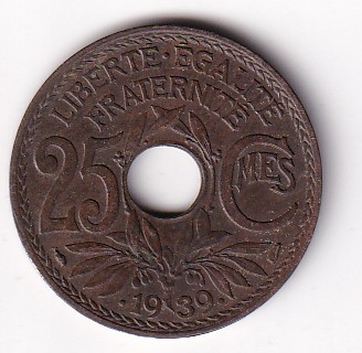 France 25 Centimes 1939 Rare Coin #I-133