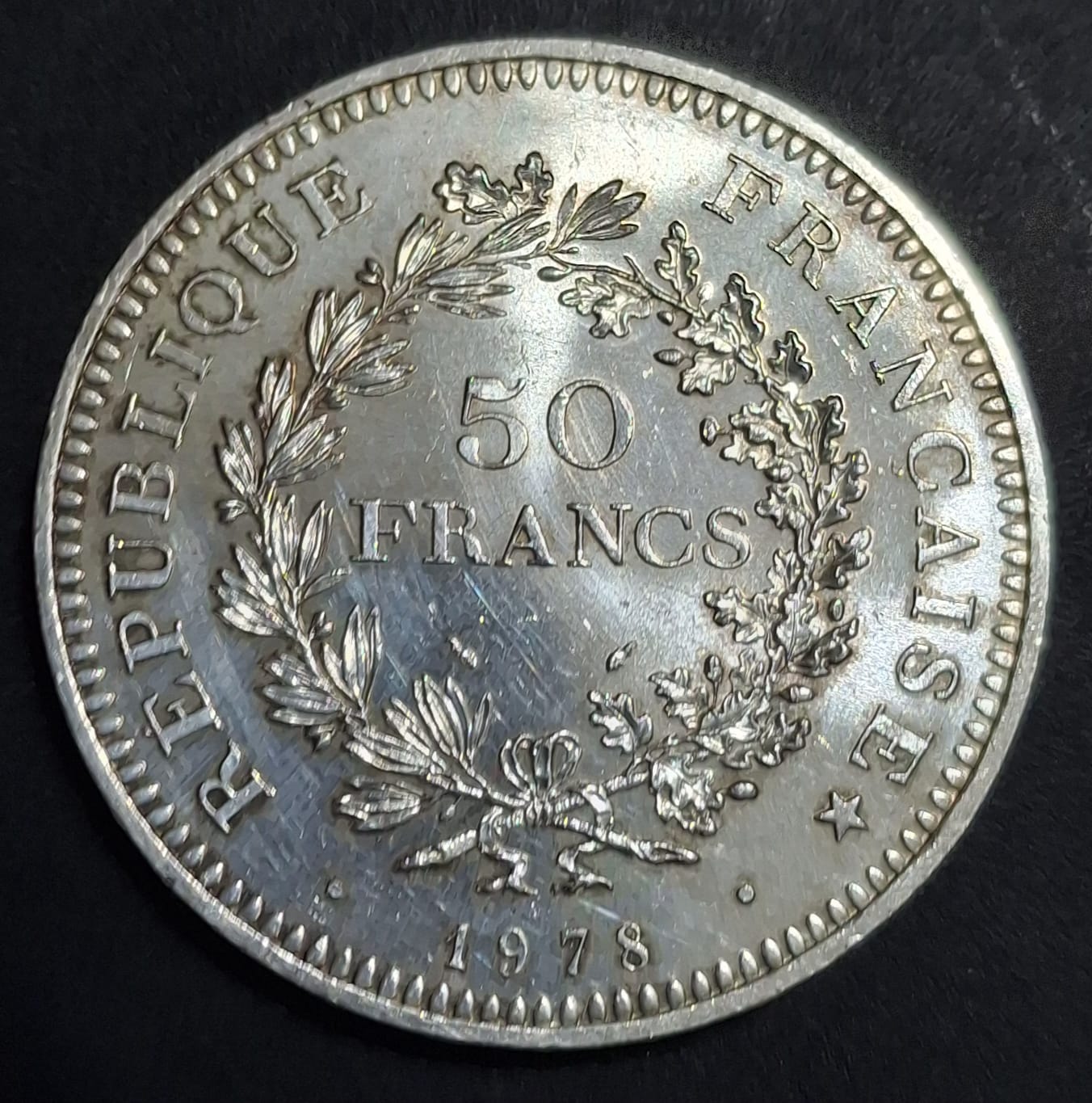 France 50 Francs 1978 “Hercules” RARE SILVER Weight 30 g RARE BIG SIZE COIN # A-503