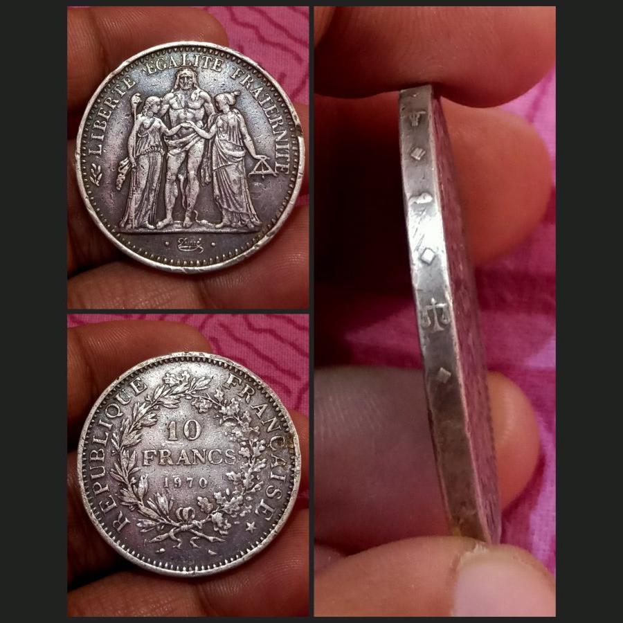 FRANCE Silver 10 FRANCS Year 1970 Weight 25 Grams Diameter 37 mm “CROWN SIZE” Liberty Egalite Fraternity RARE Coinage Collectable Grade.
