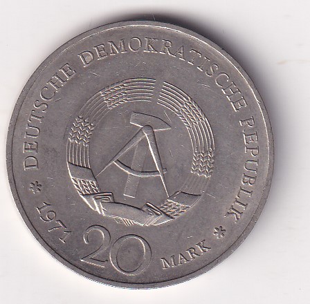 German Democratic 20 Mark 1971 – 100th Anniversary – Birth of Heinrich Mann Commemorative issue Rare UNC Coin # I-61