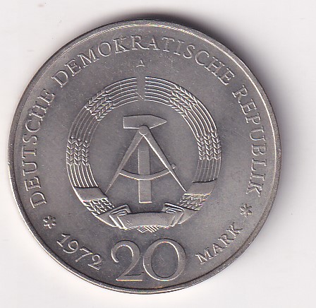 German Democratic 20 Mark 1972 – Friedrich von Schiller Commemorative issue Rare UNC Coin # I-59