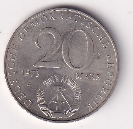 German Democratic 20 Mark 1973 – Otto Grotewohl Commemorative issue Rare UNC Coin # I-60