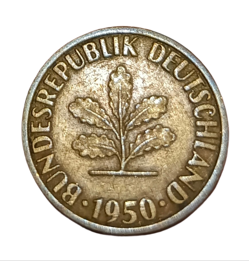 The GERMANY Brass 5 PFENNIG coin from the year 1950 holds a special place in numismatic history. Issued by Germany’s Federal Republic, this collectible piece showcases intricate design details and craftsmanship typical of the era. Made of durable brass, the coin features a striking depiction of the denomination on one side and a symbol of national pride on the other. With a collectible grade, this coin is a testament to Germany’s post-World War II recovery and economic resurgence.