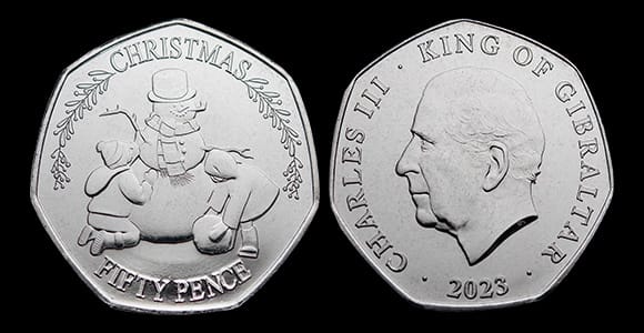 Gibraltar, 50 Pence, 2023, Charles III – Christmas 2023, KM #1909, UNC Condition.
