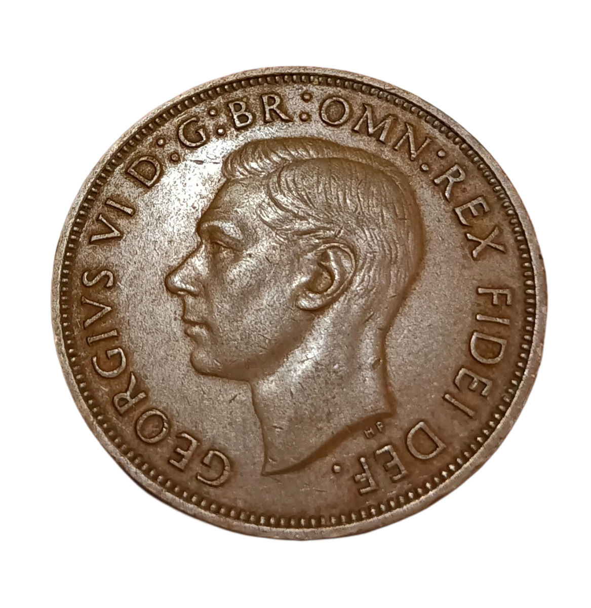 Transport yourself back to 1949 with this remarkable collectible – the GREAT BRITAIN Bronze ONE PENNY featuring the “Big Size” design of King George VI. Crafted from high-grade bronze, this coin is a true piece of history that encapsulates the essence of the era. Issued by the British authority, this penny holds a special place in numismatic collections for its metal composition and historical significance.