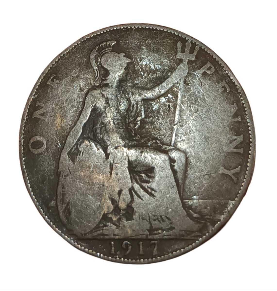 GREAT BRITAIN Copper ONE PENNY “Big Size” Year 1917 King GEORGE-V Collectable Grade.