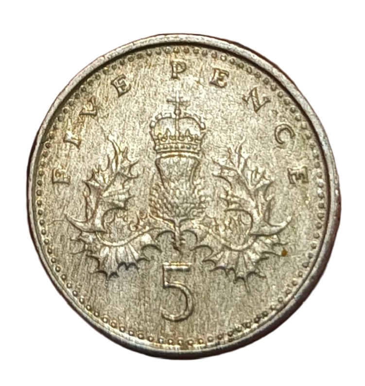 GREAT BRITAIN Cu/Ni 5 PENCE Year 2000 Queen ELIZABETH-II High Collectable Grade.