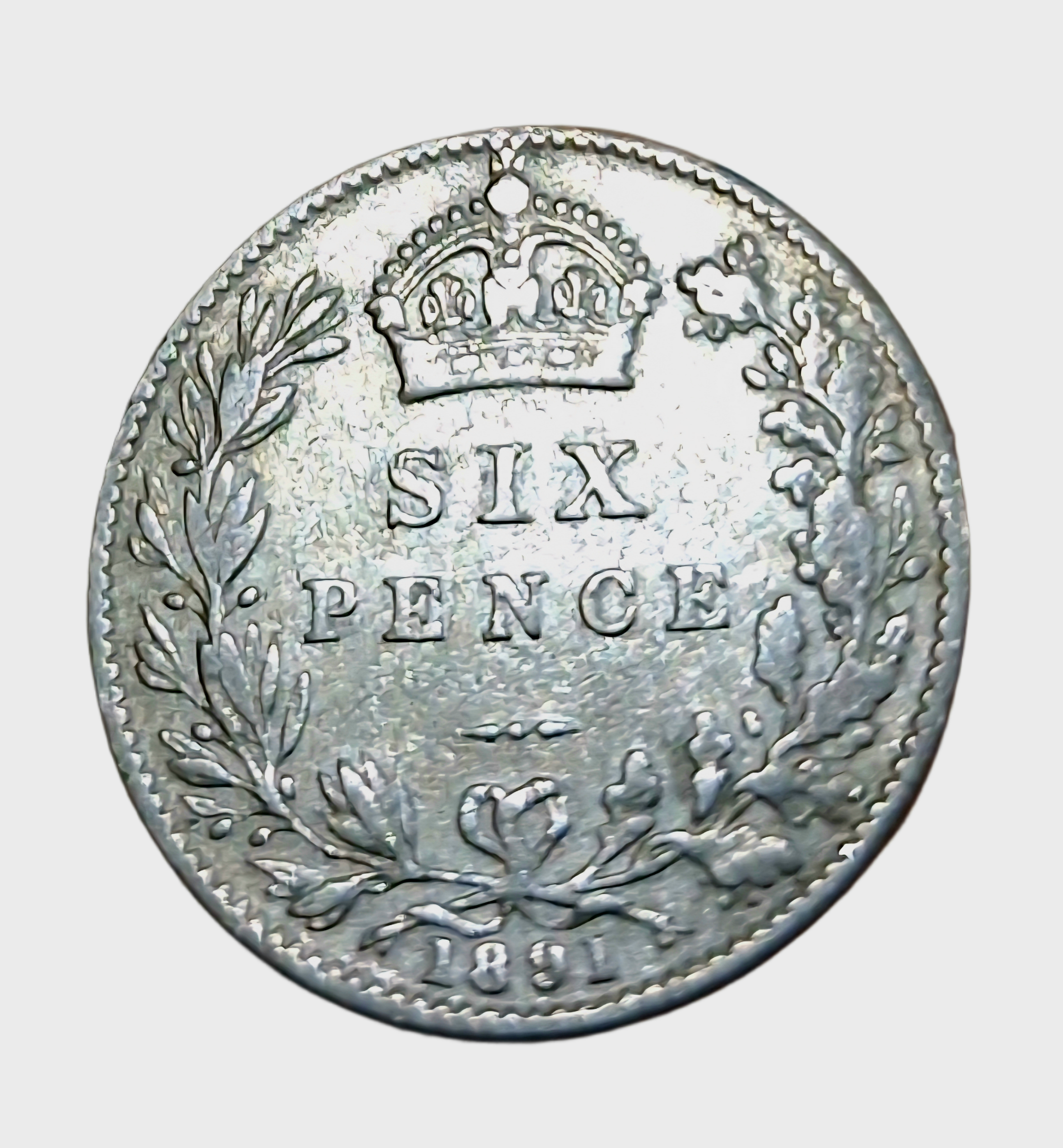 Great Britain UNITED KINGDOM Silver SIX PENCE Year 1891 Queen VICTORIA DEI GRATIA Weight= 3.01g **RARE** High Collectable Grade.