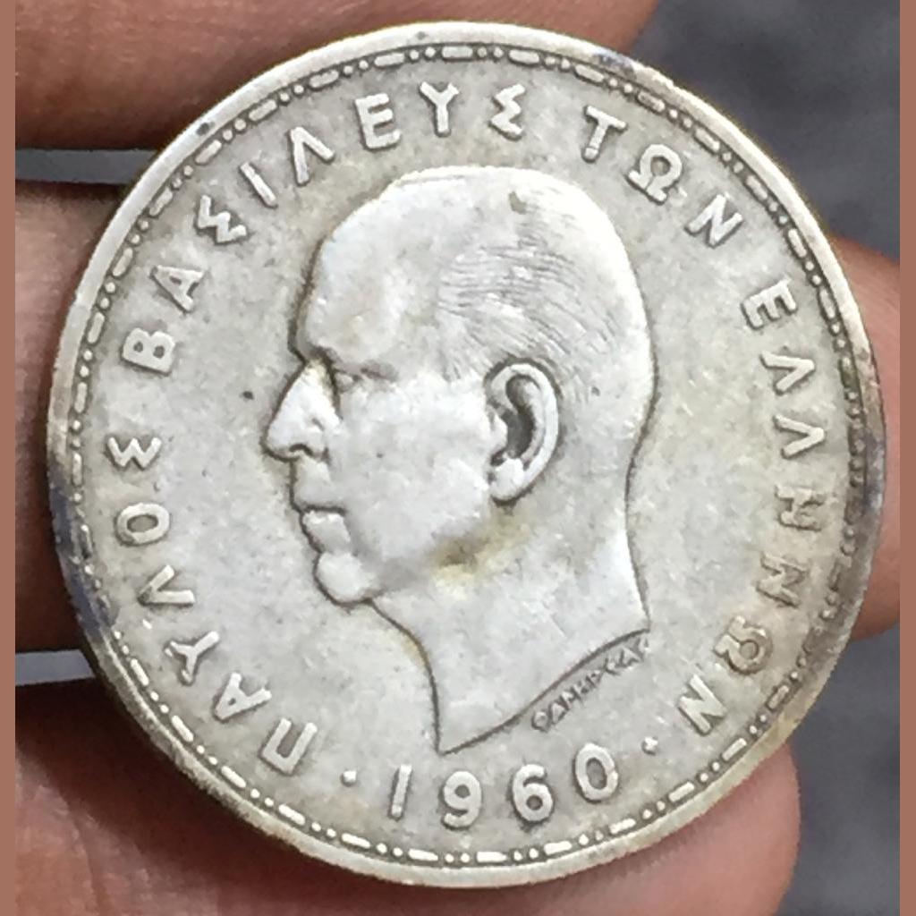 Greece 20 Drachmai – Paul I (1960) RARE Silver Copper COIN