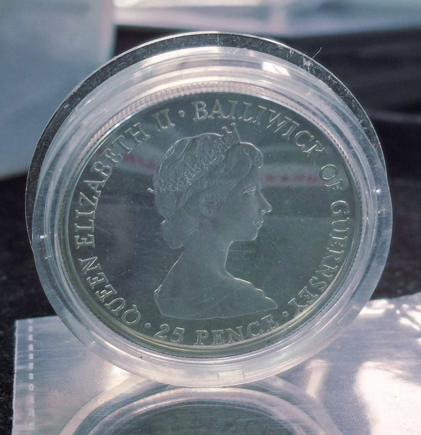 Guernsey 25 Pence 1981 – Elizabeth II Royal Wedding; Silver Proof Commemorative issue Rare Coin WITH CAPSOOL #4444