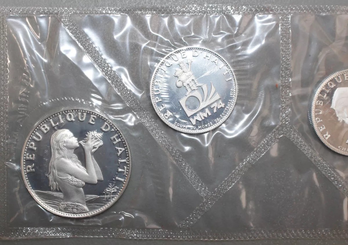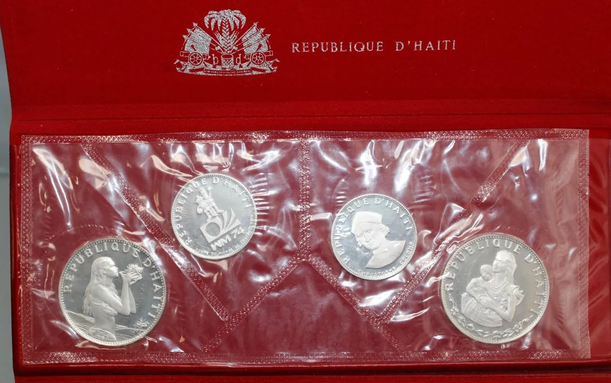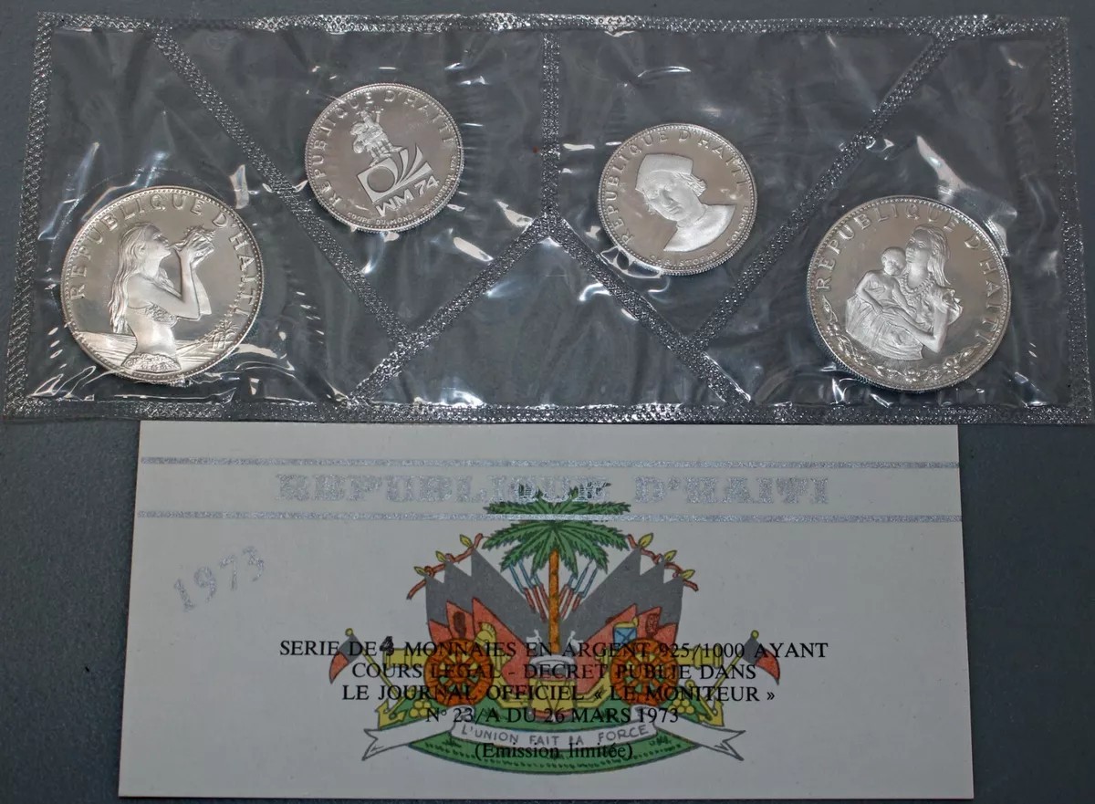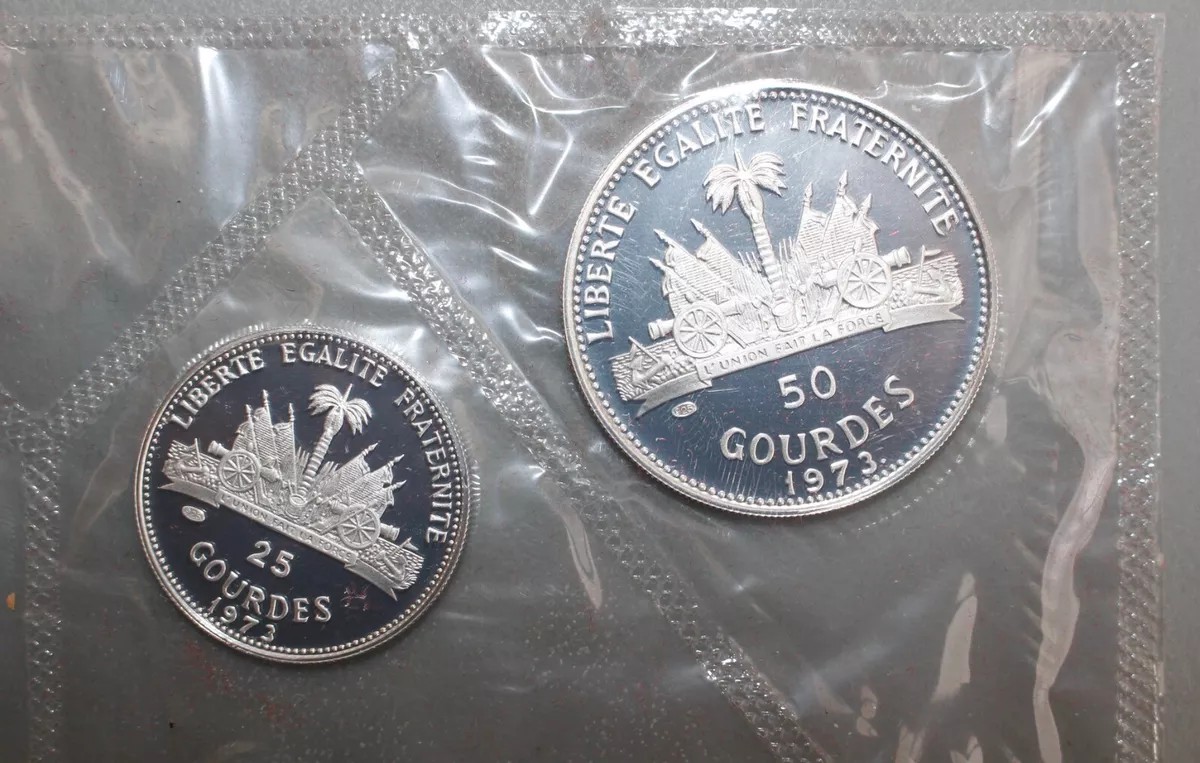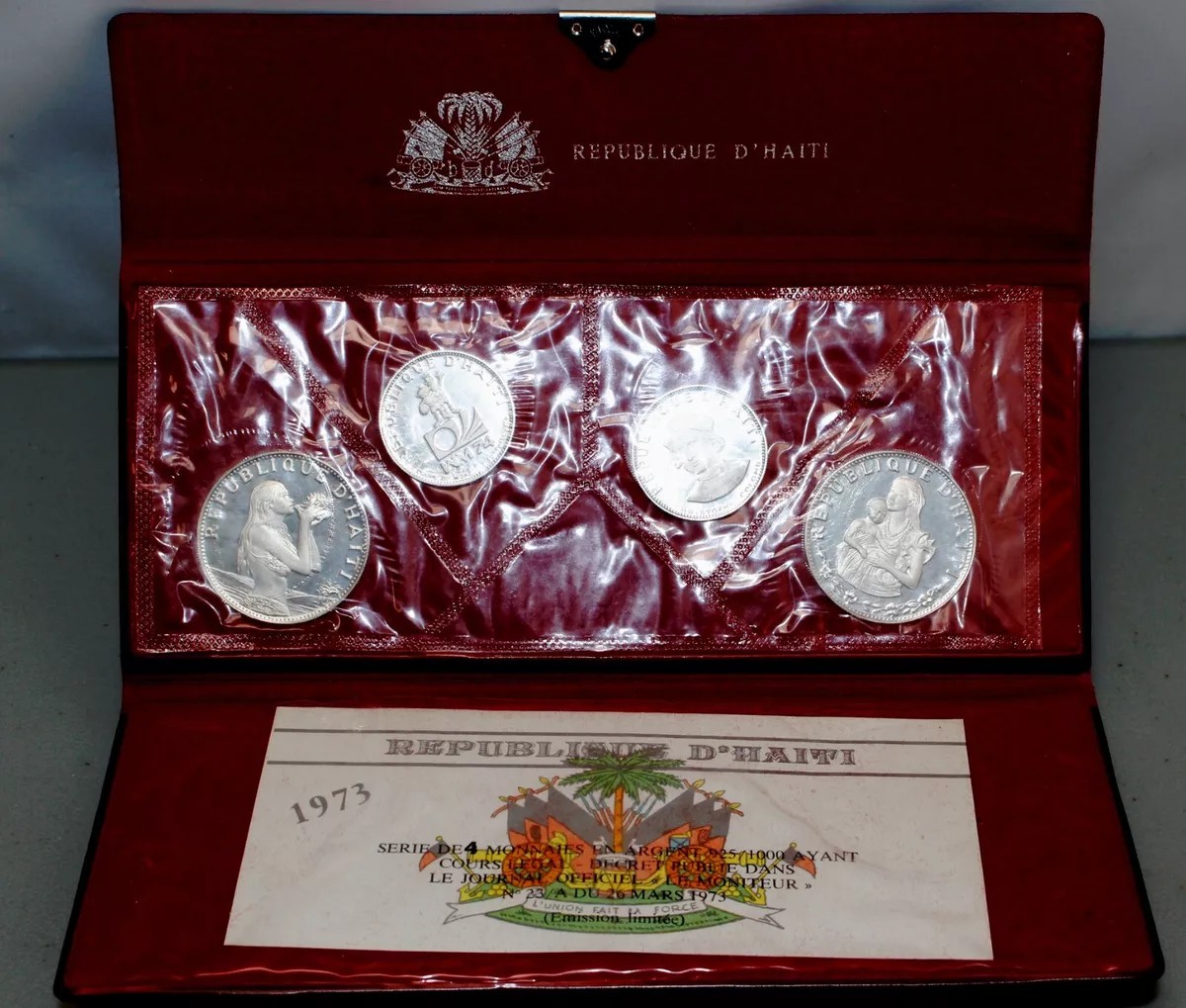 Haiti Proof Set (4 Coins) Silver 25 & 50 Gourdes 1973 w/ Original Case & CoA. Very rare. Please see description