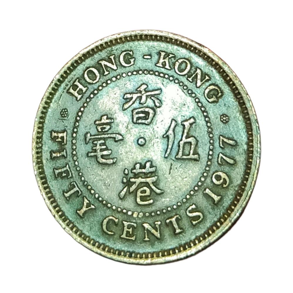 HONG KONG Brass 50 CENTS Year 1977 Queen ELIZABETH-II in Collectable Grade.