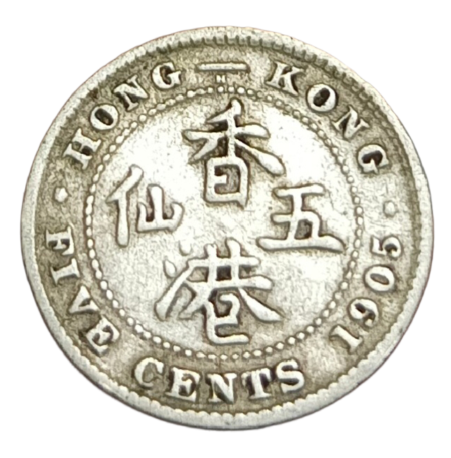 🌟 Rare 1905 HONG KONG Silver 5 CENTS coin