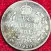 India – British ¼ Rupee – Edward VII 1910 SILVER RARE COIN #S-51