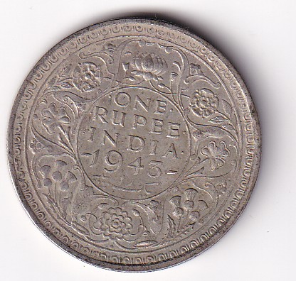 India – British 1 Rupee – George VI 1943 BOMBAY MINT EXTREME RARE RARE COIN #N-305
