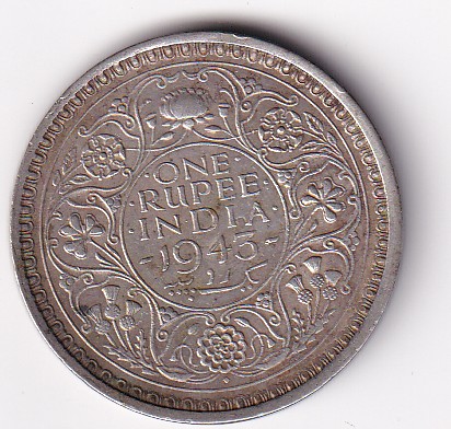 India – British 1 Rupee – George VI 1943 BOMBAY MINT EXTREME RARE RARE COIN #N-306
