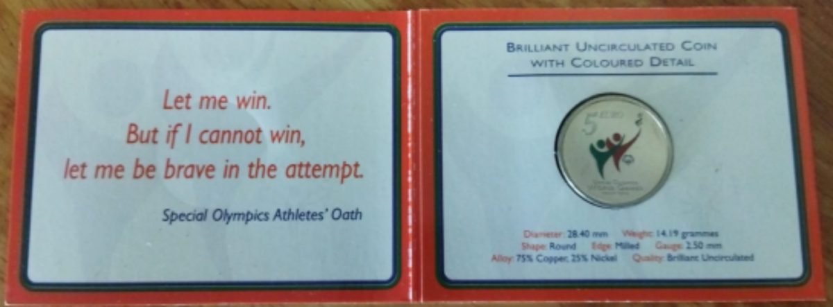 Ireland, 2003, 5 Euro, Special Olympics 2003 in Dublin, Coloured, BUNC, Mint folder.