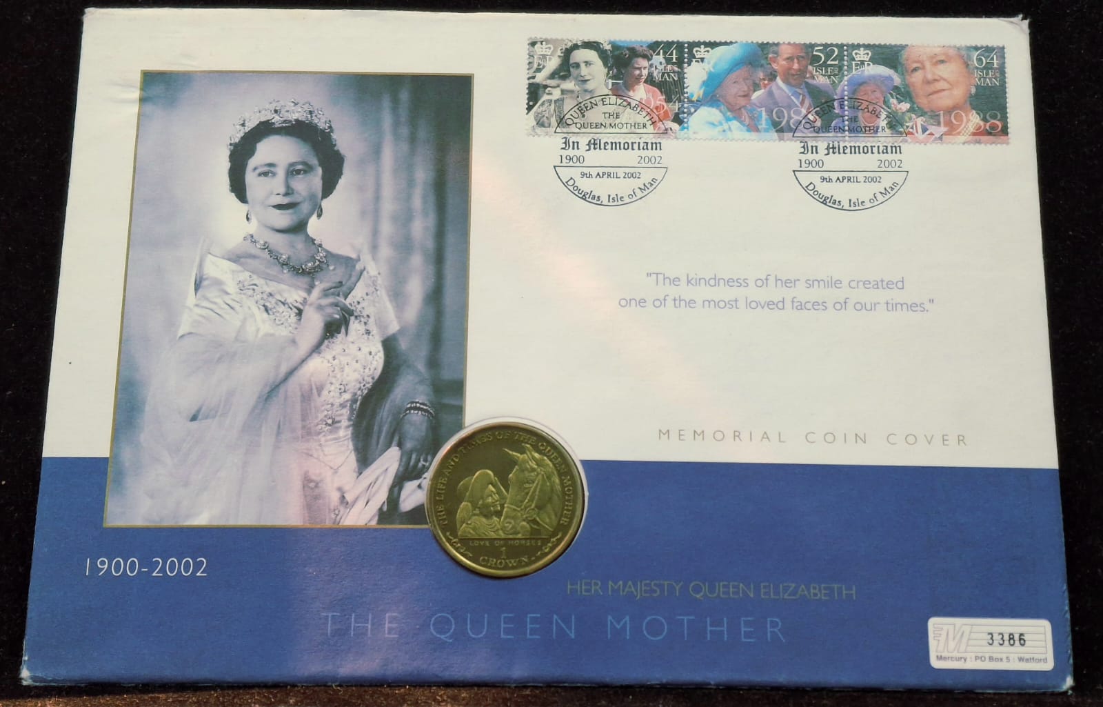 ISLE OF MAN 1 CROWN 2002 THE QUEEN MOTHER MEMORIAL COIN COVER MINT PACK GEM UNC