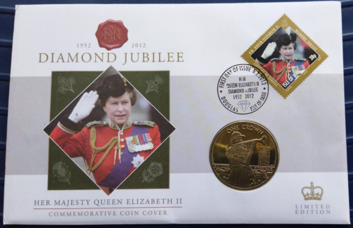 Isle of Man, 1 Crown, 2012, Diamond Jubilee of Accession, KM #1532, First Day Cover.
