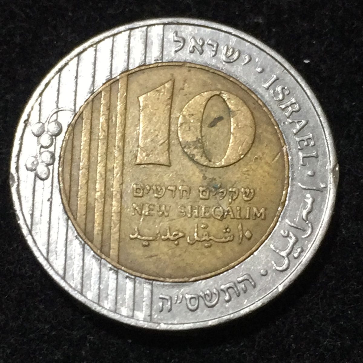Israel 10 New Sheqalim (1995-2017) Bimetallic Rare Damage COIN #A-9