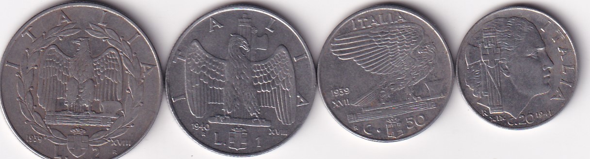 ITALY 4 DIFFERENT DENOMINATION Victor Emmanuel III RARE COINS SET