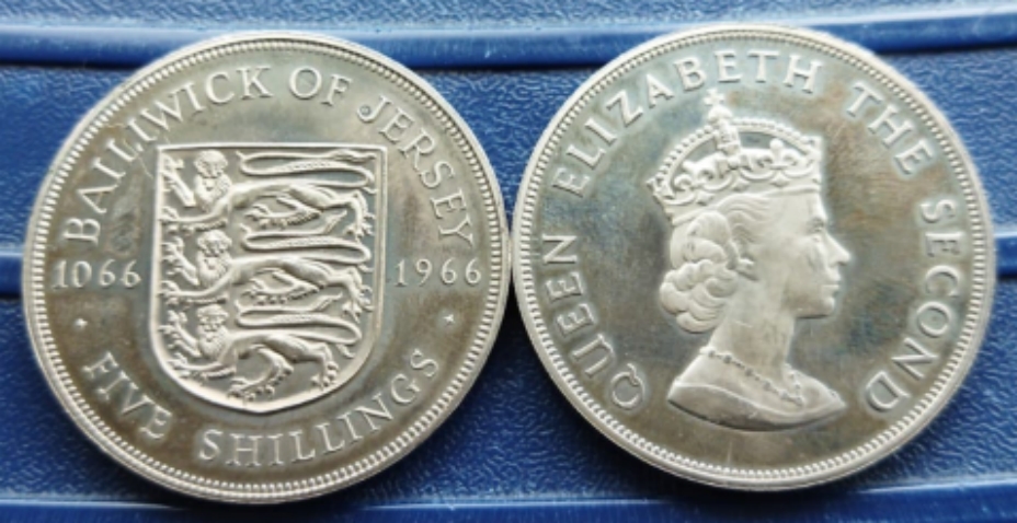 Jersey, 5 Shillings, 1966, 900th Anniversary of the Battle of Hastings, KM# 28, UNC Condition.