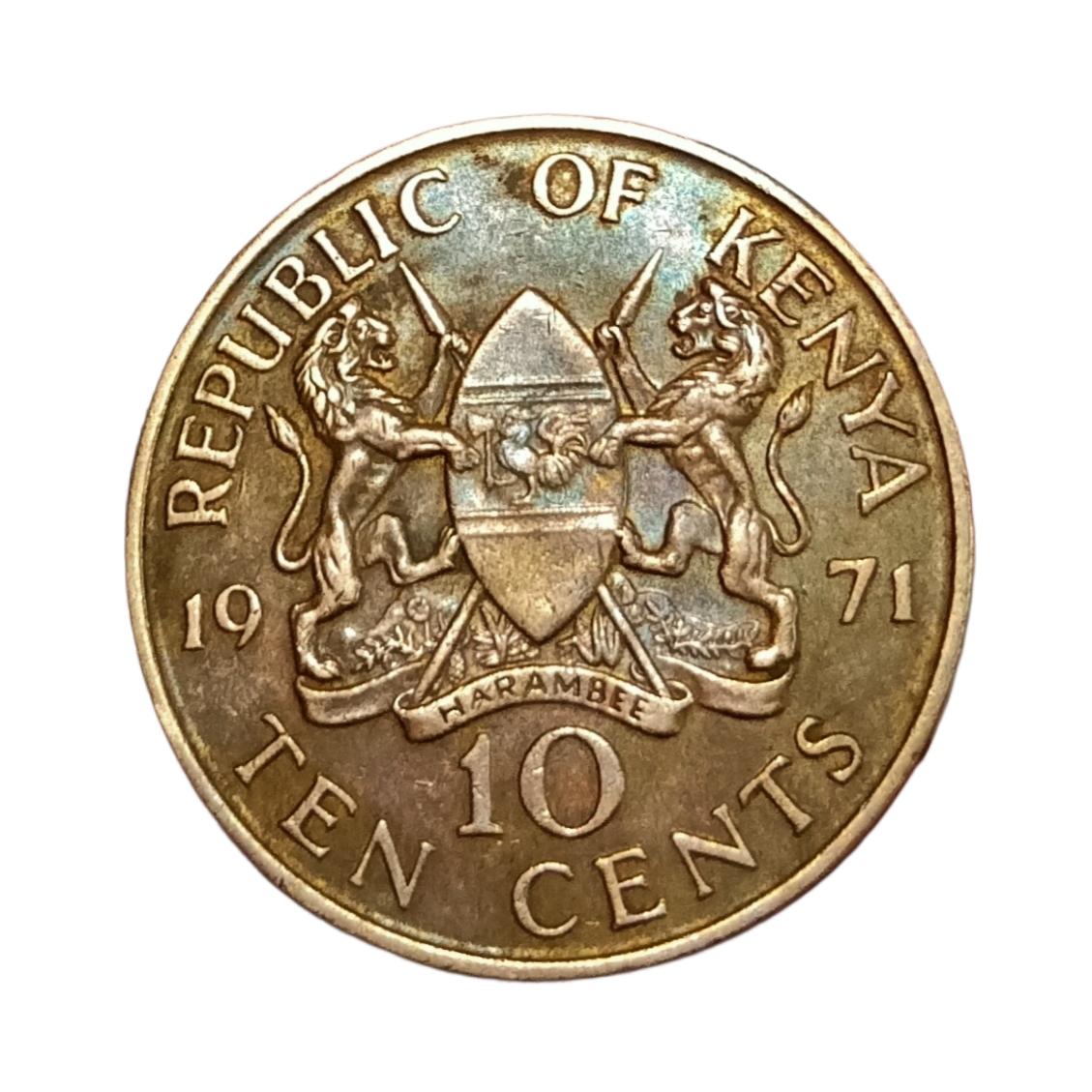 KENYA Brass 10 CENTS Year 1971 “Big Size” MZEE JOMO KENYATTA Portrait High Collectable Grade.