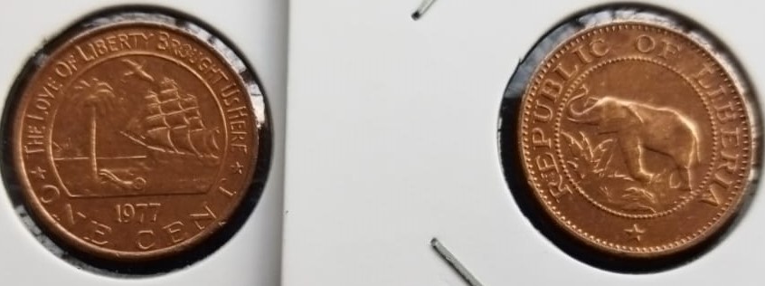 Liberia, 1 Cent, 1977, KM #13, XFine Condition.