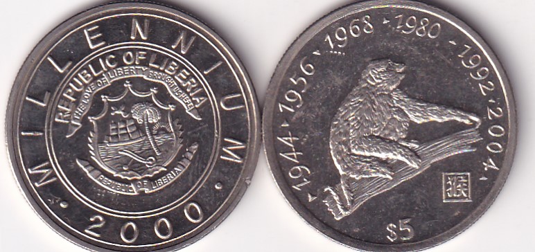 LIBERIA 5 DOLLAR COMMEMORATIVE UNC RARE 1 COIN #D-75