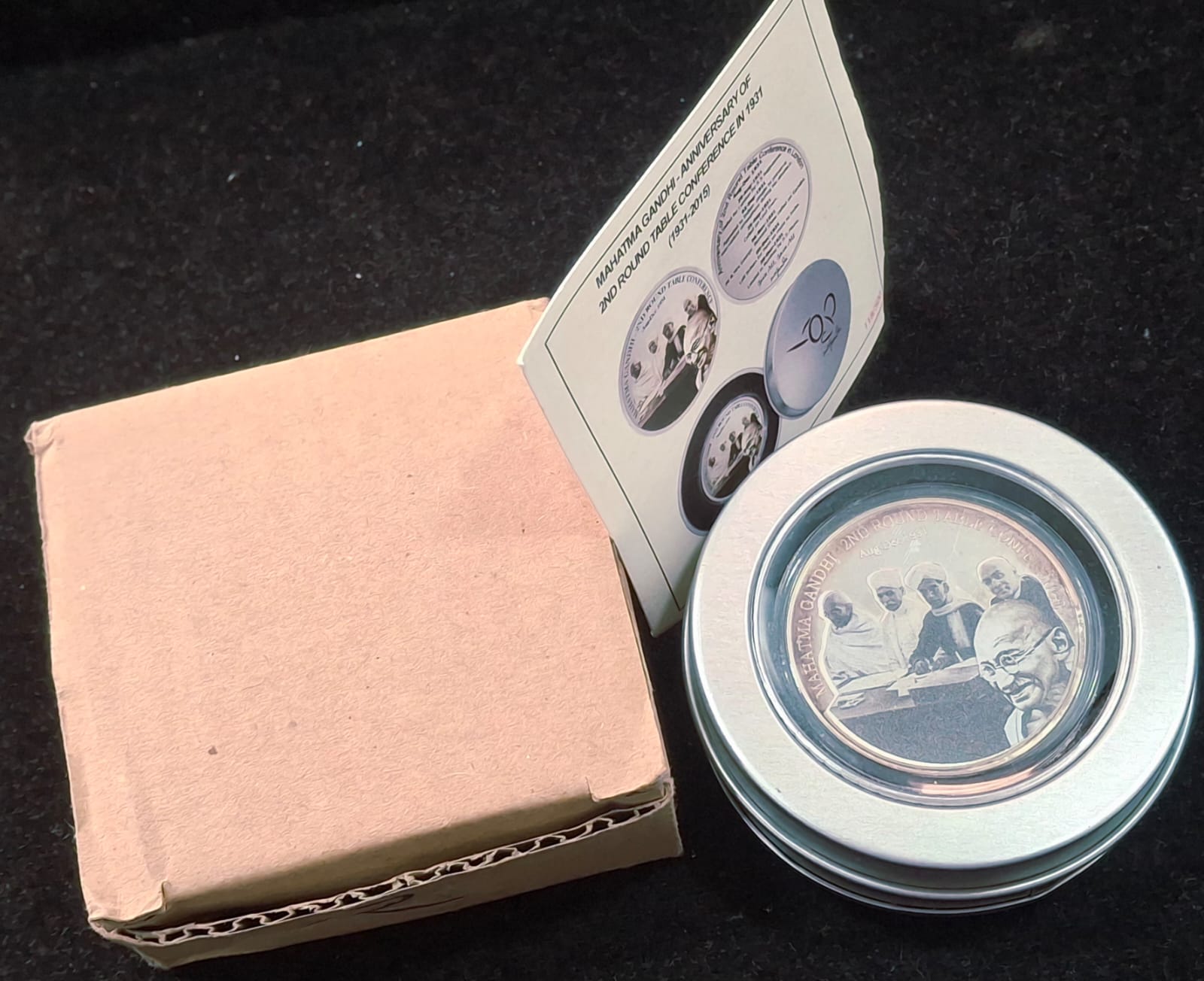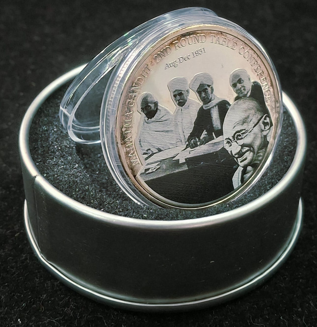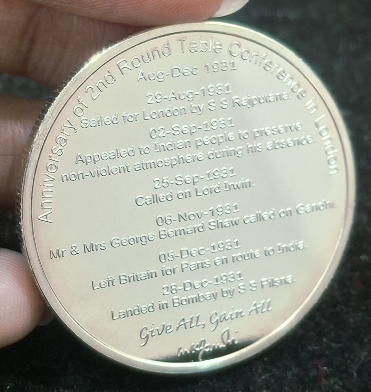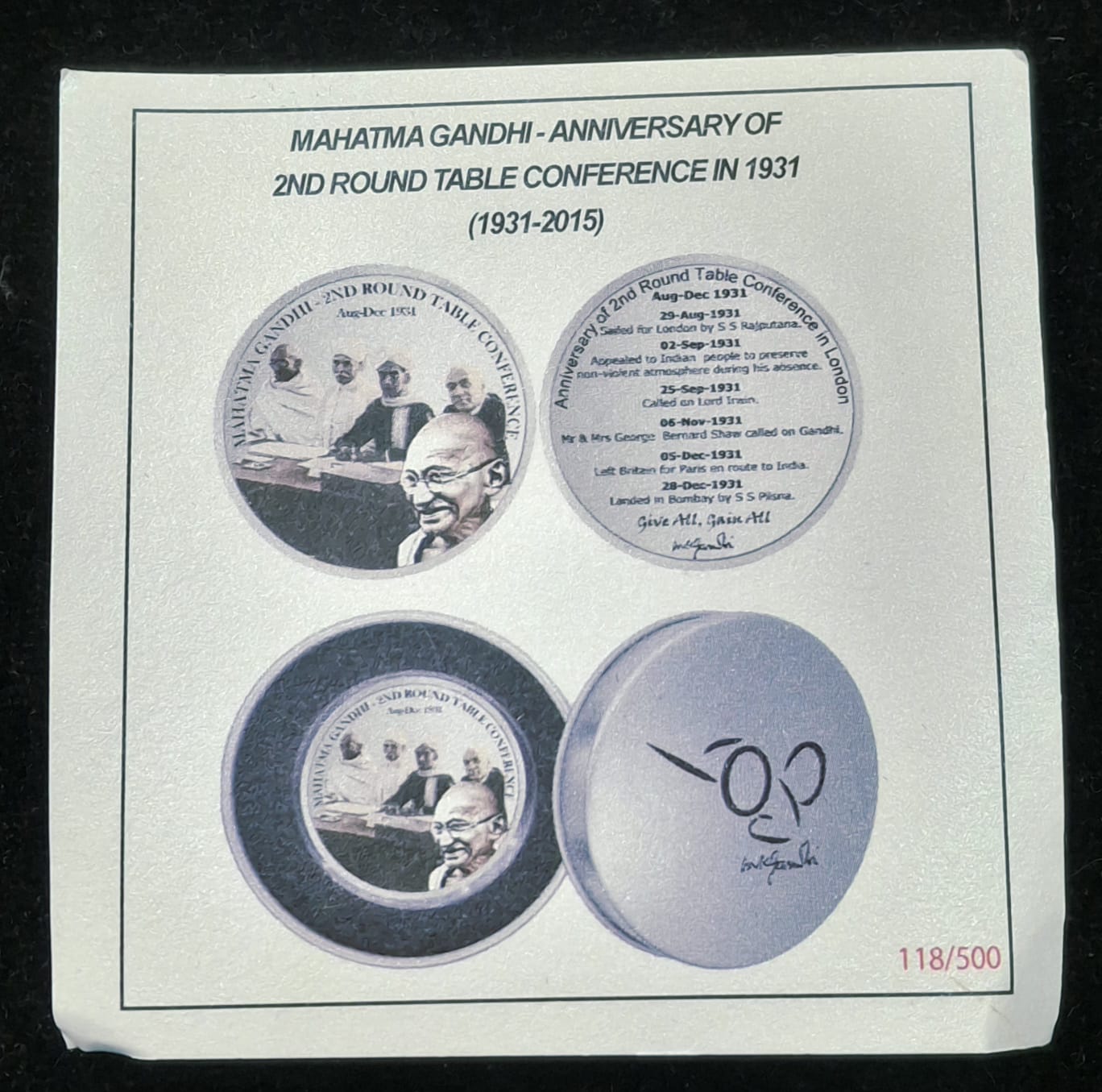 Mahatma Gandhi – Anniversary of 2nd Round Table Conference In (1931-2015) Silver Plated Medallion With Box & Certificate