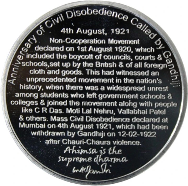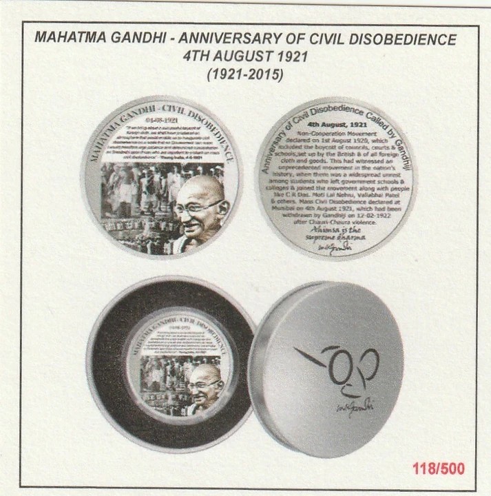 Mahatma Gandhi Civil Disobedience 1921 Beautiful Medallion With Box And Certificate