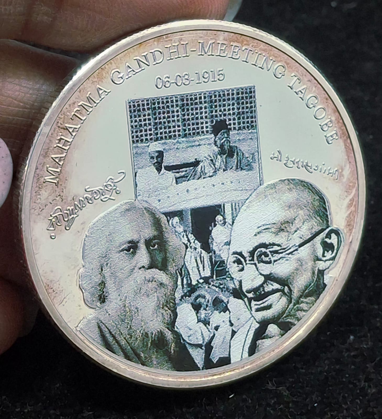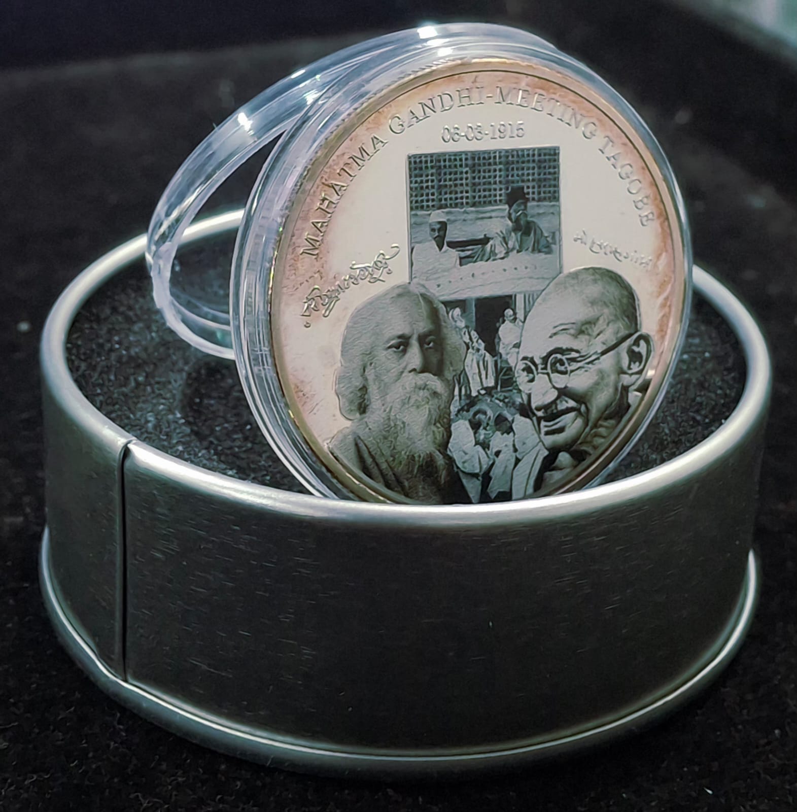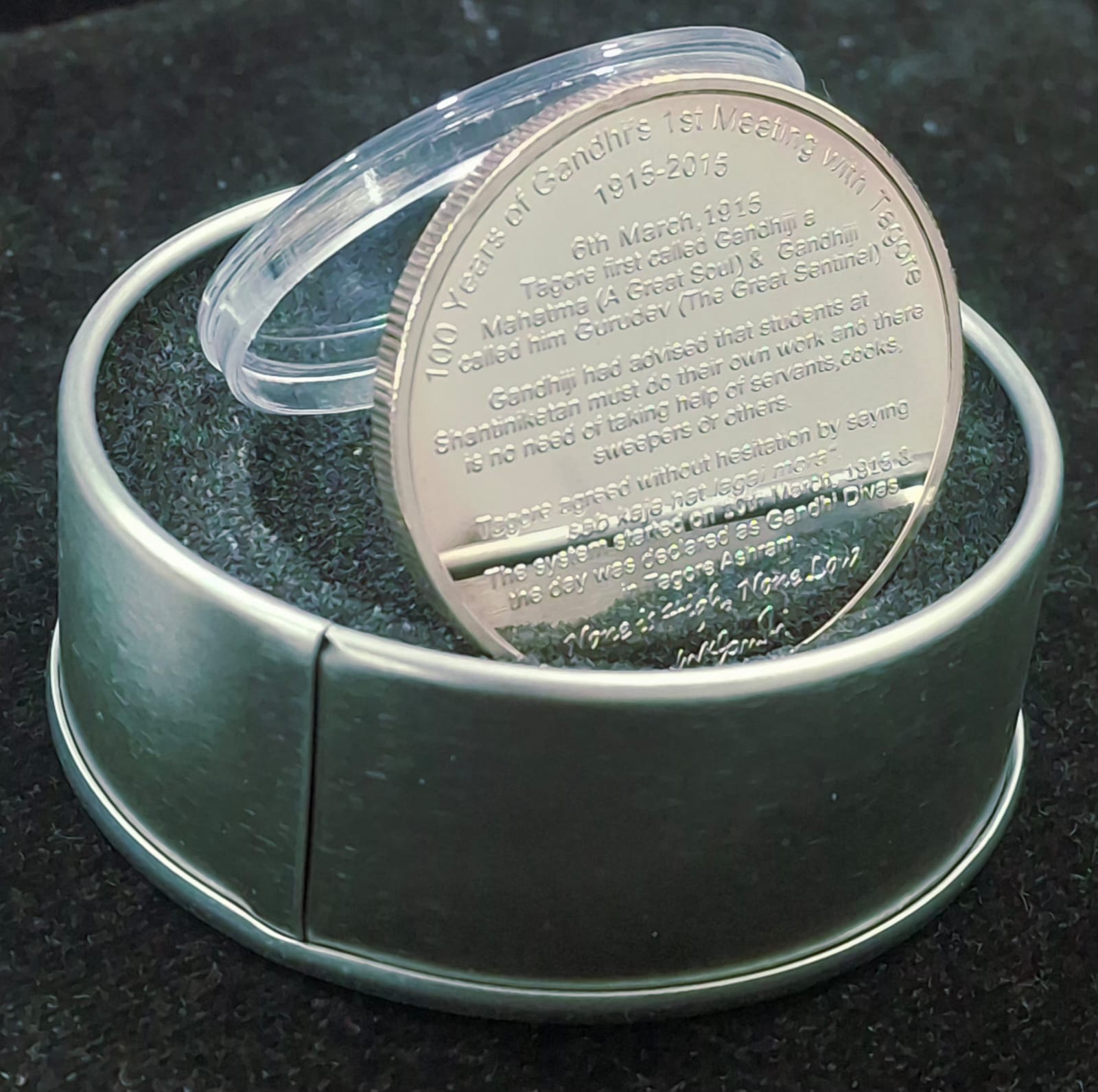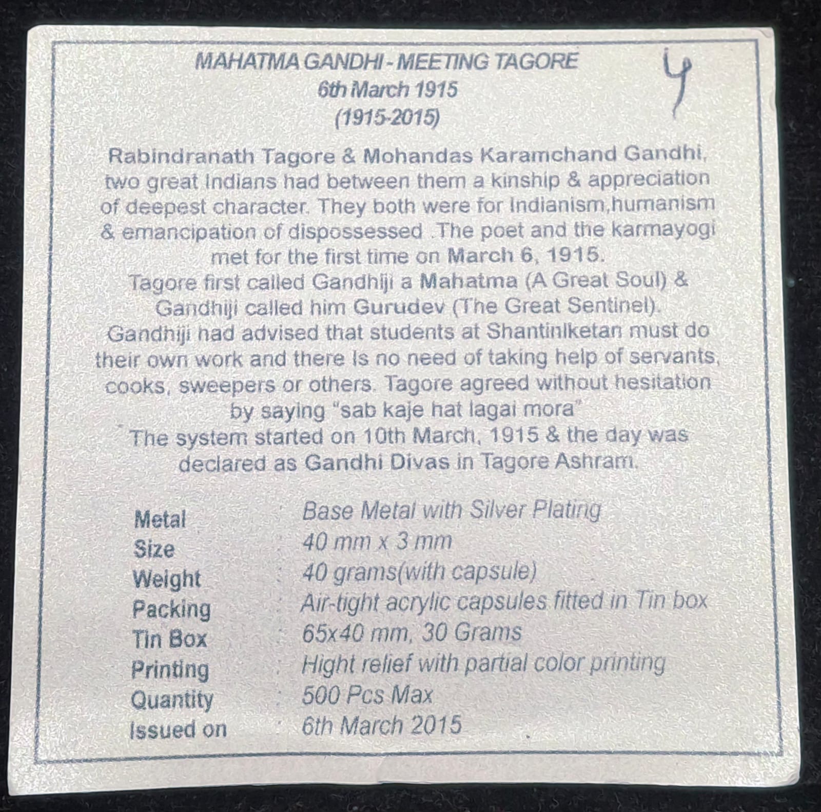 Mahatma Gandhi- Meeting Tagore (1915 – 2015) Silver plated medallion with box & certificate