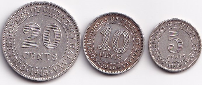 Malaya1945 Silver George Six 3 Pcs Rare Set
