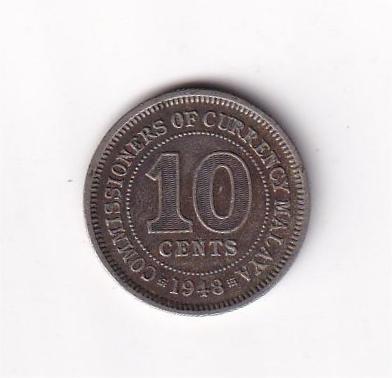 Malaysia (Malaya) 10 Cents 1948 George VI Rare Coin#D-134