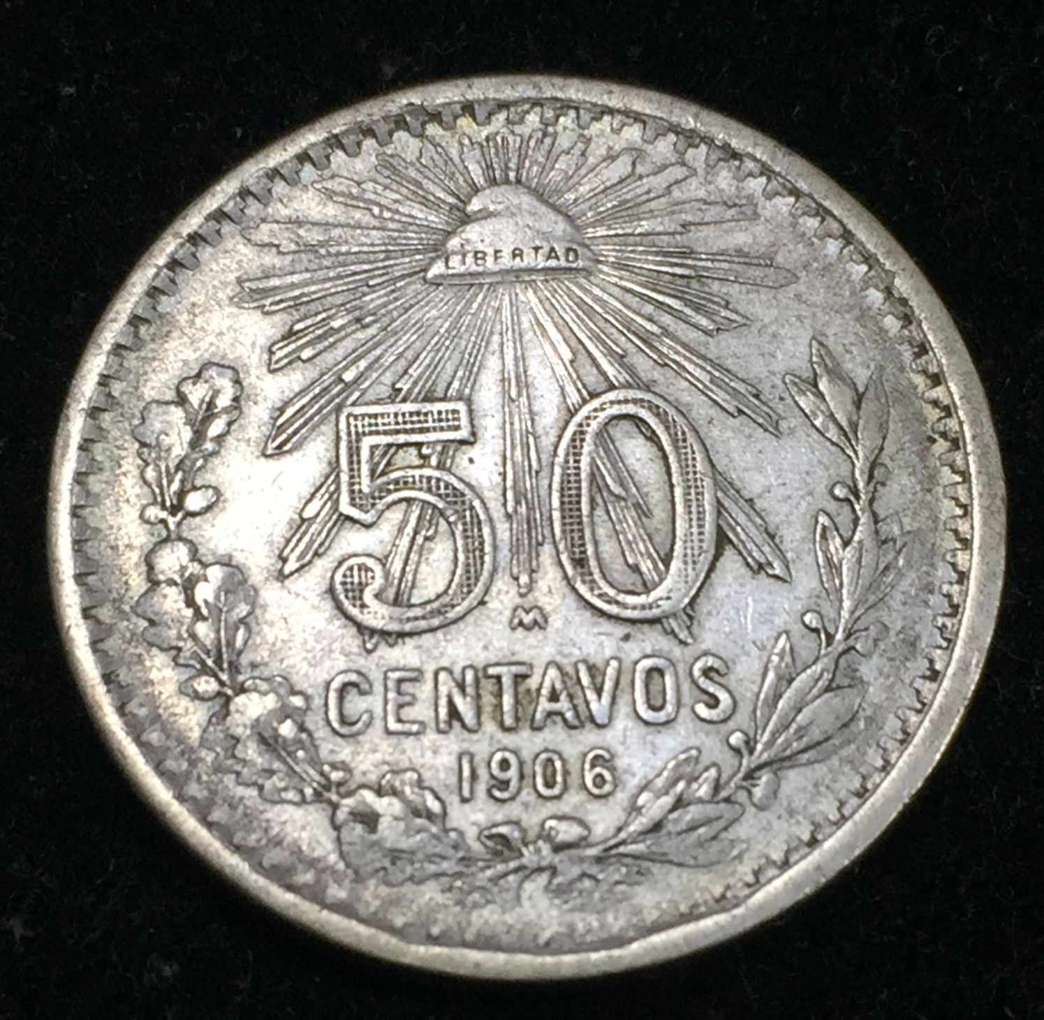 50 Centavos 1906 large size Silver .800 (Weight 12.5 g RARE COIN )