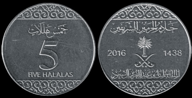 Saudi Arabia, 5 Halala, 2016, KM# 74, UNC Condition.