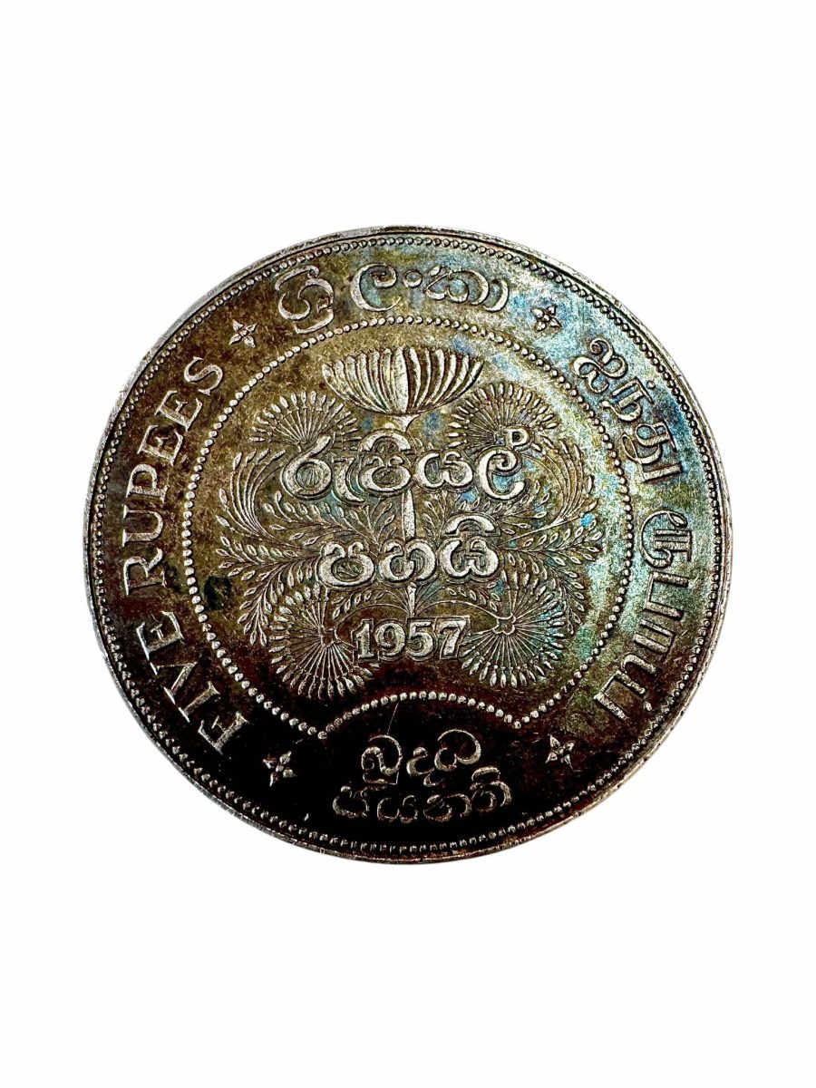 Sri Lanka Vintage Issue 1957 Rs 5 Ultra Unique and Rare Elizabeth II Silver Issue