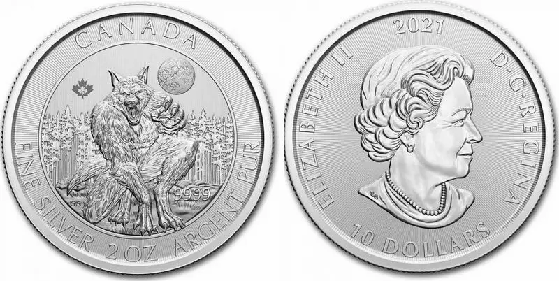 Canada 2 Oz Fine Silver Ware Wolf and Queen Elizabeth II 2021 Issue Very Unique and Rare