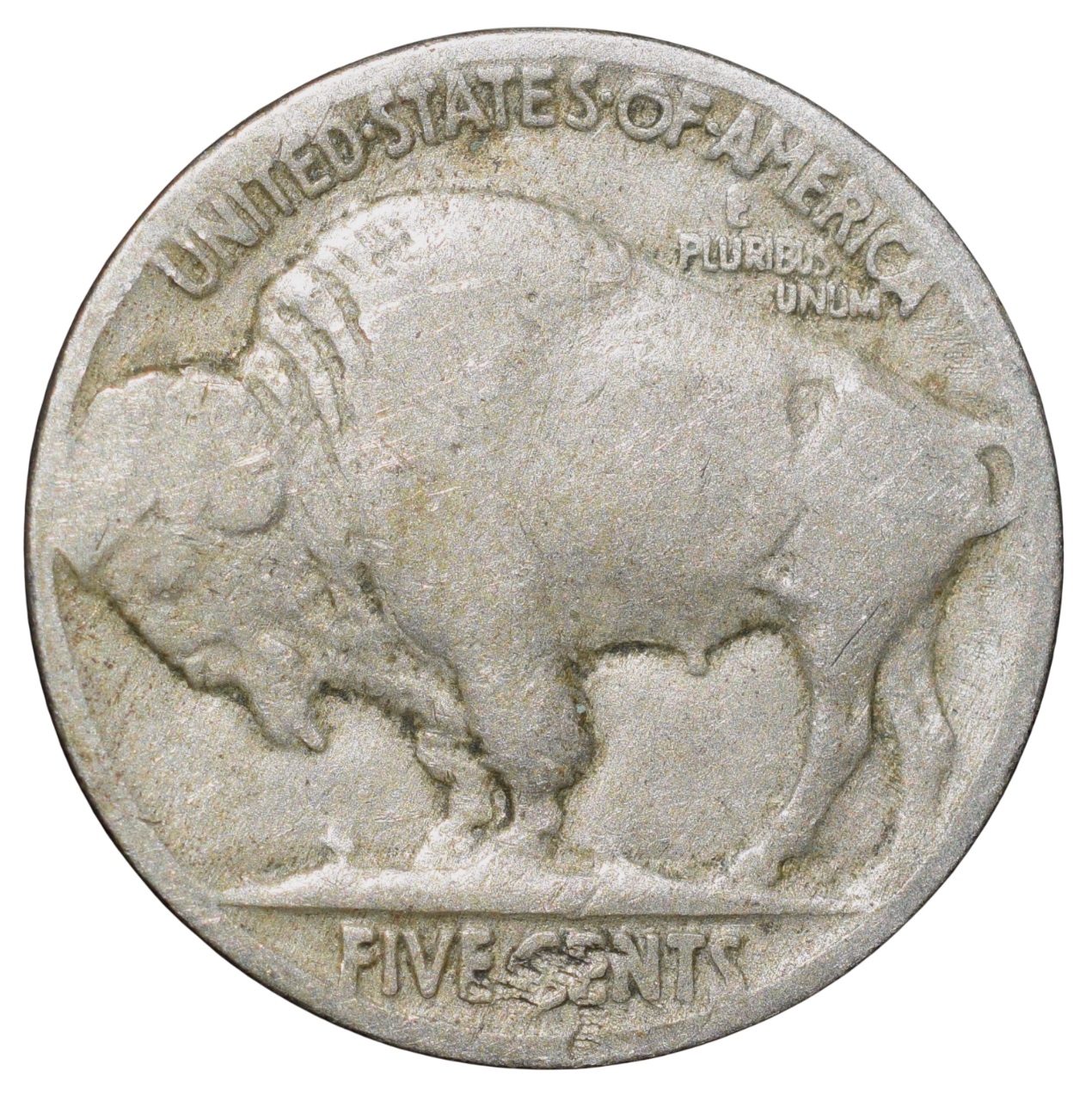 Copper-Nickel 5 Cents of USA (AD 1936) with Standing American Bison Rare