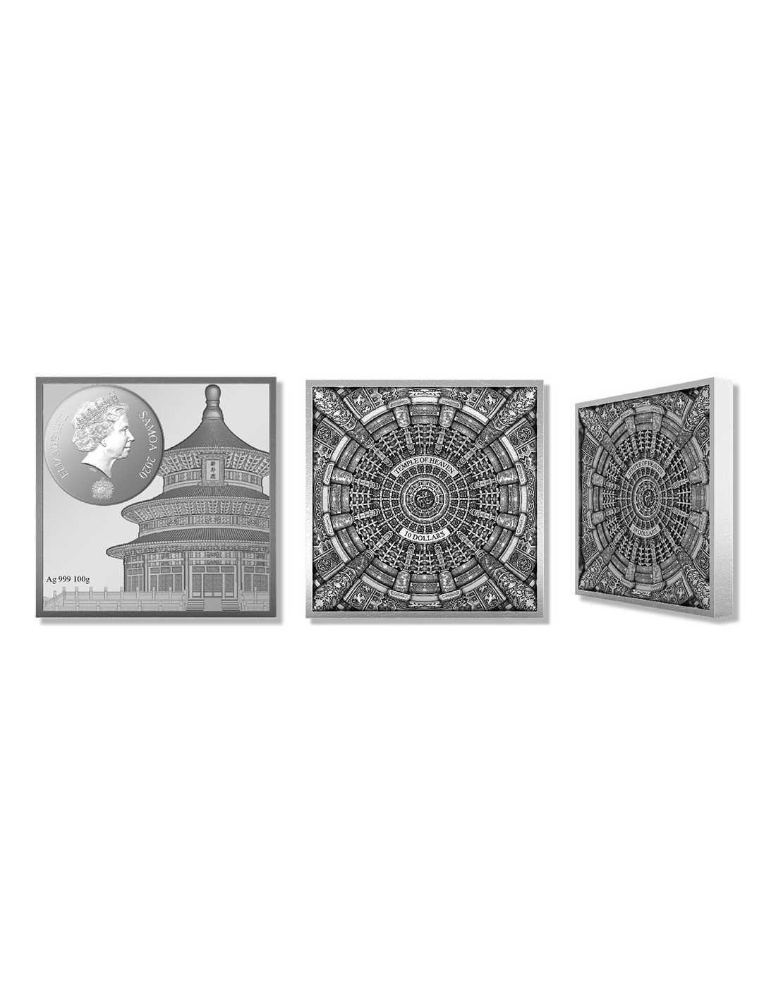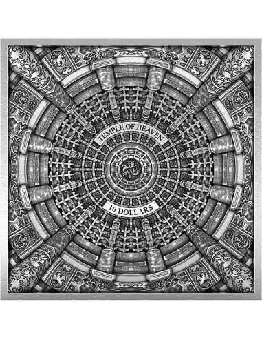 DRAGON AND PHOENIX TEMPLE OF HEAVEN Caisson Ceiling Silver Coin 10$ Samoa 2021 Ultra Rare