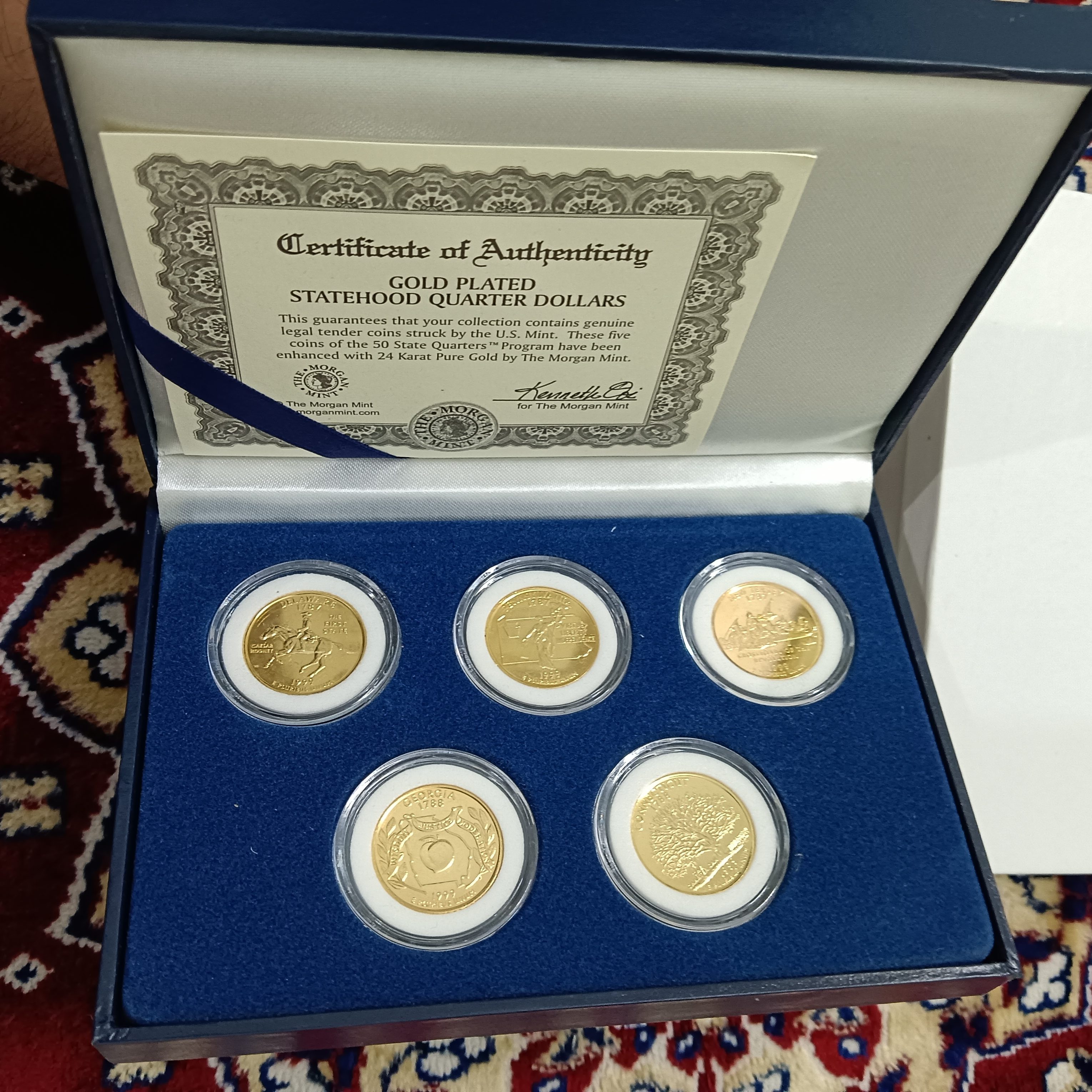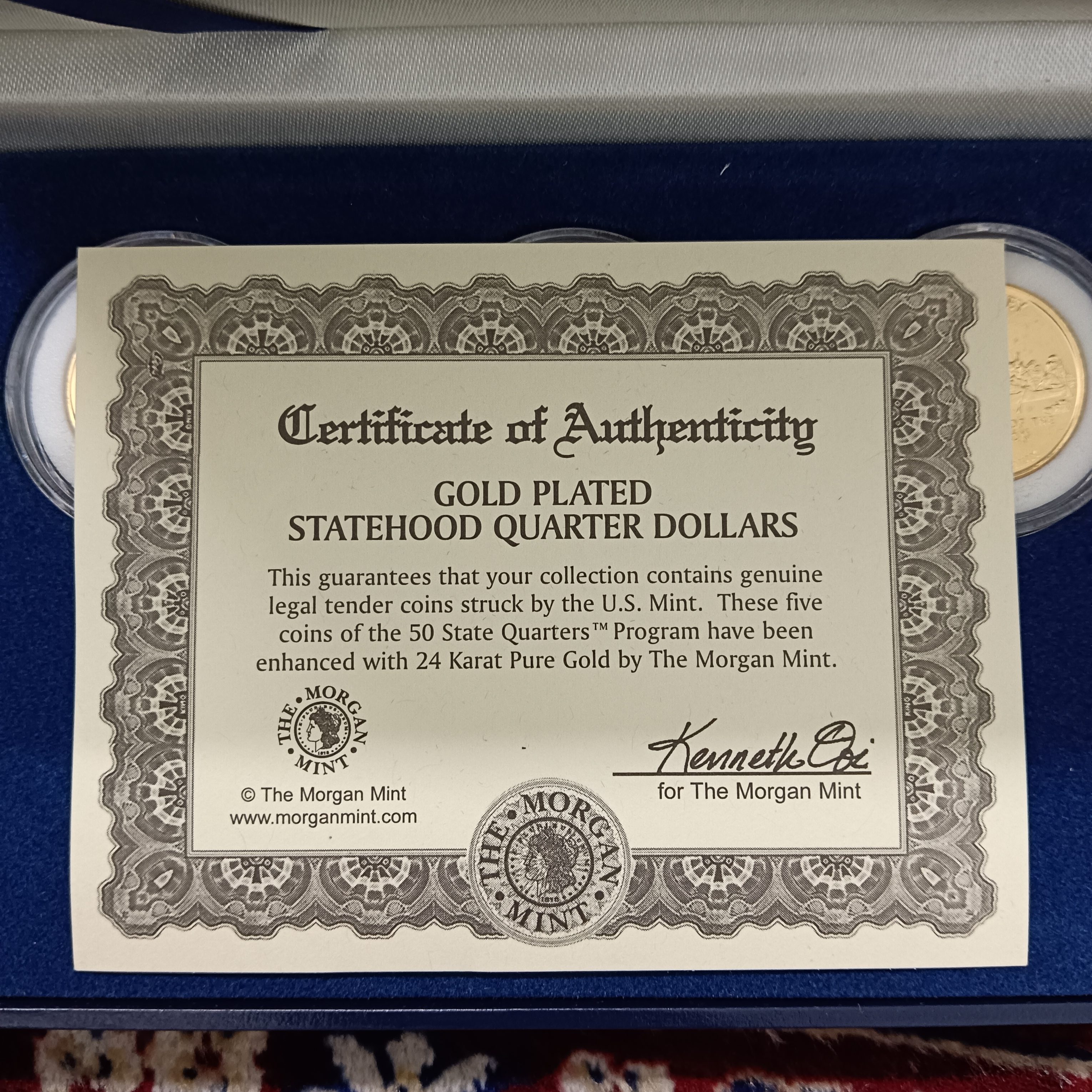 - Extremely Rare State Quarter Dollars United States of America Uncirculated Proof Coins Authenticity Certificate Morgan Mint By USA 24 Kt Gold Plated Issue Coin 1999 Year
