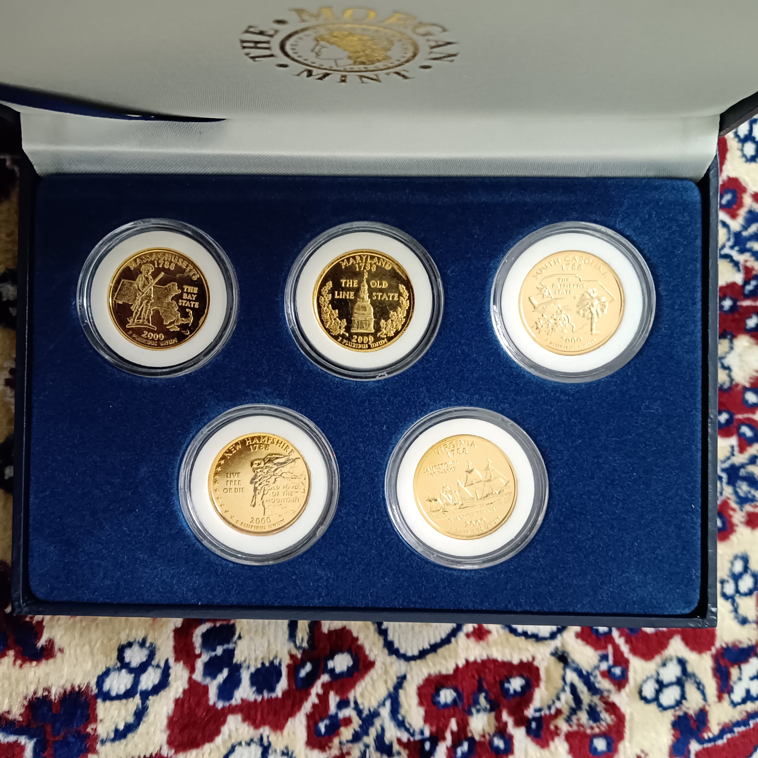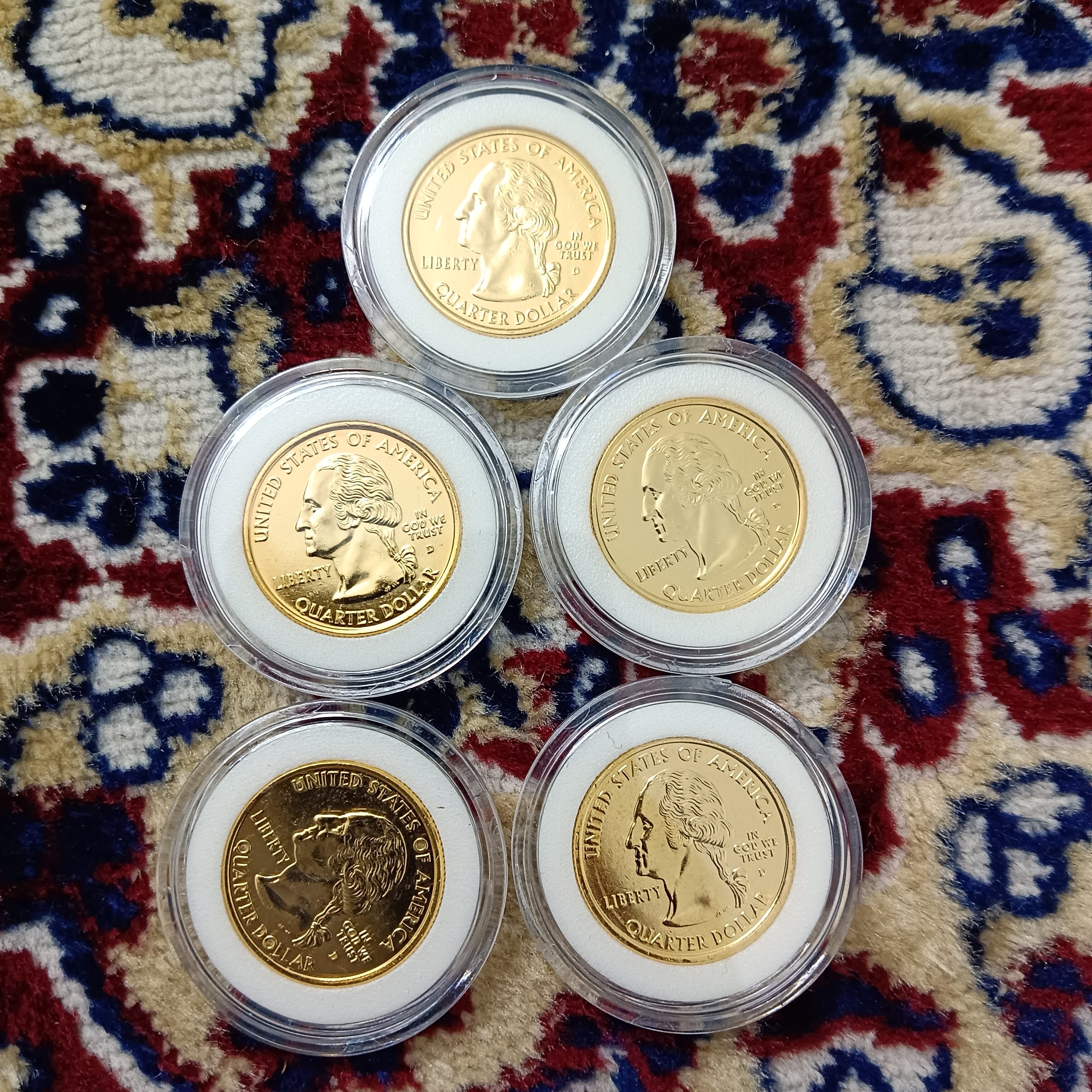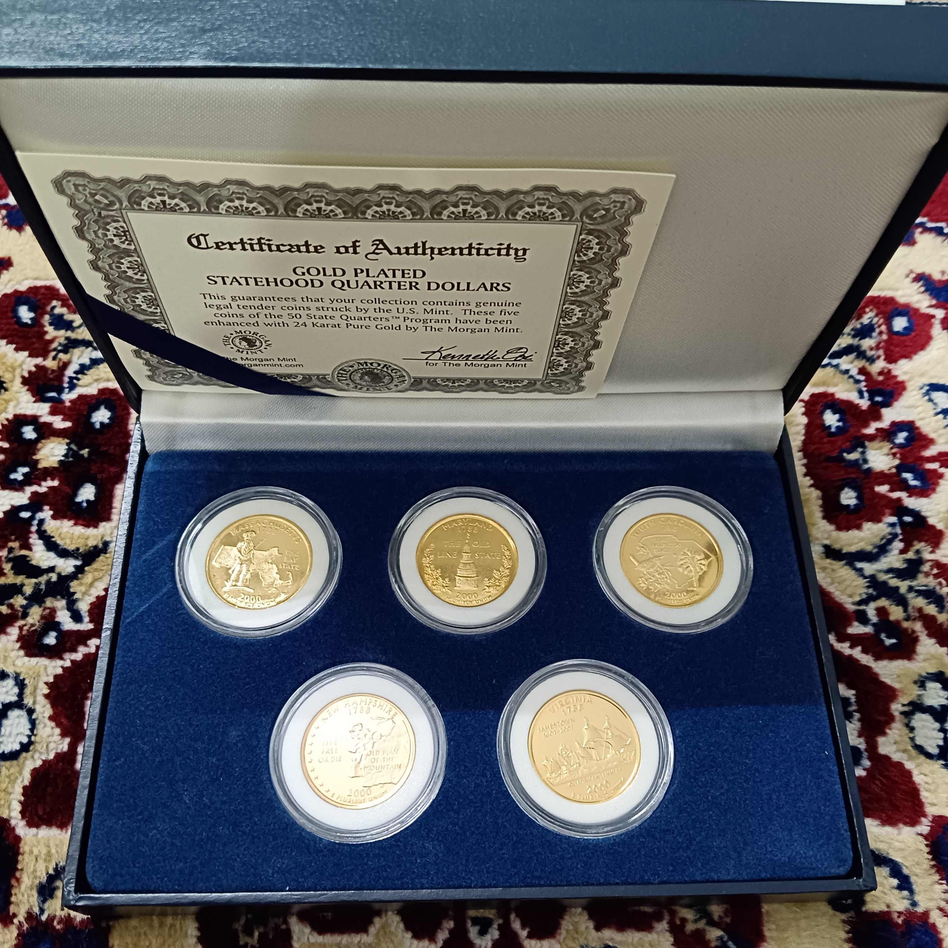 - Extremely Rare Statehood Quarter Dollars United States of America Uncirculated Proof Coins Authenticity Certificate Morgan Mint By USA 24 Kt Gold Plated Issue Coin