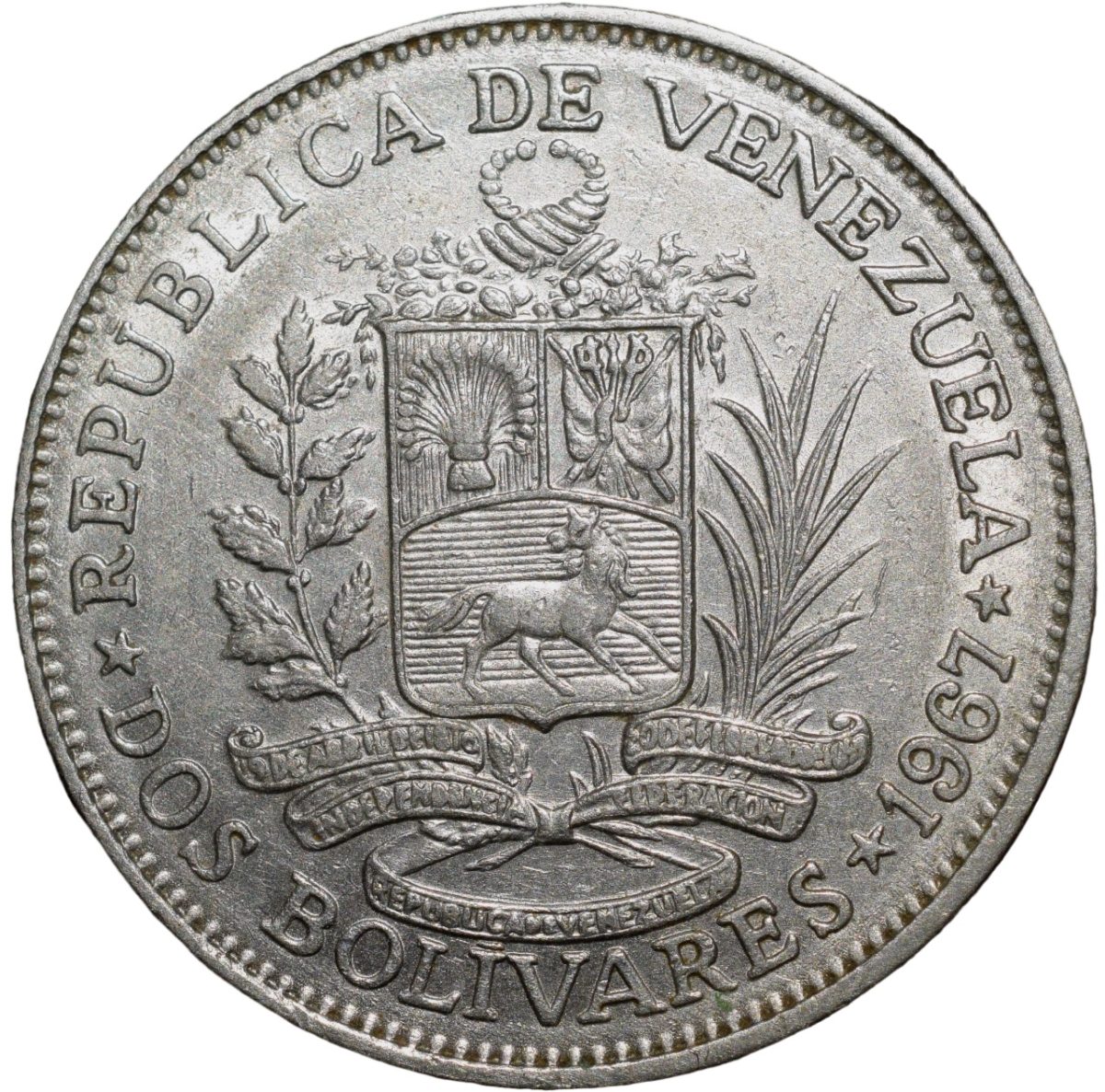 Large Nickel 2 Bolivares of Venezuela Country (AD 1967) with Coat of arms