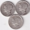 Mercury One Dime 1944 Three Different Silver Mint Coins Lot