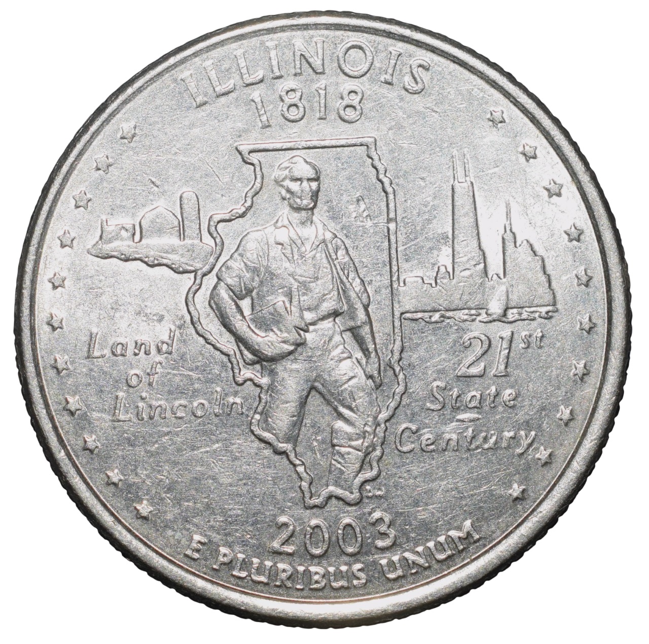 Nickel 1/4 Dollar of United States of America (AD 2003) Commemorative Issue ‘ILLINOIS – Land of Lincoln’ State