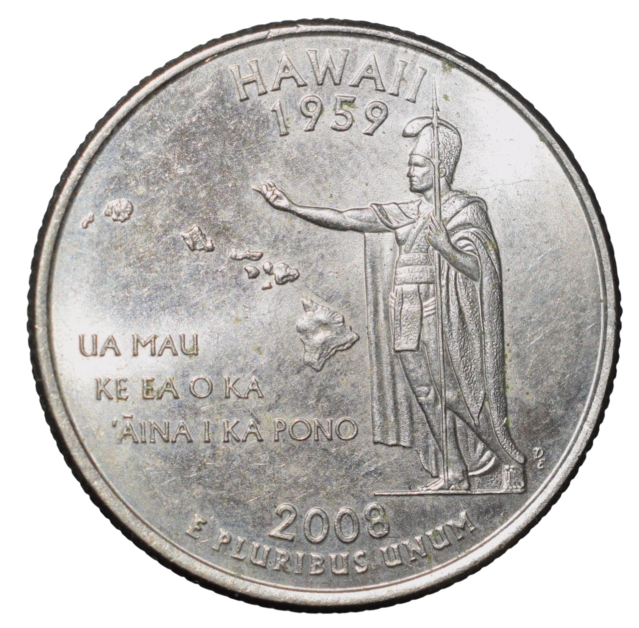 Nickel 1/4 Dollar of United States of America (AD 2008) Commemorative Issue ‘Hawaii’ About UNC Grade