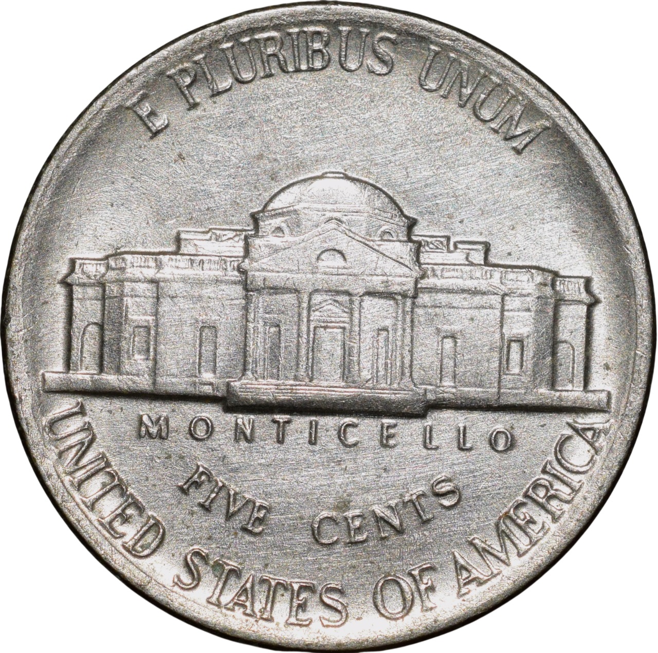 USA, Jefferson, (AD 1986), Nickel 5 Cents, Obv: Jefferson facing left, Inscription & Date, Rev: Denomination, 4.94 Gms, 21.04 mm, Extremely Fine.