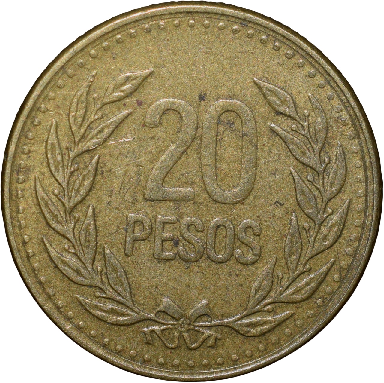 Nickel-Brass 20 Pesos of Colombia Country (AD 1992) with Coat of Arms