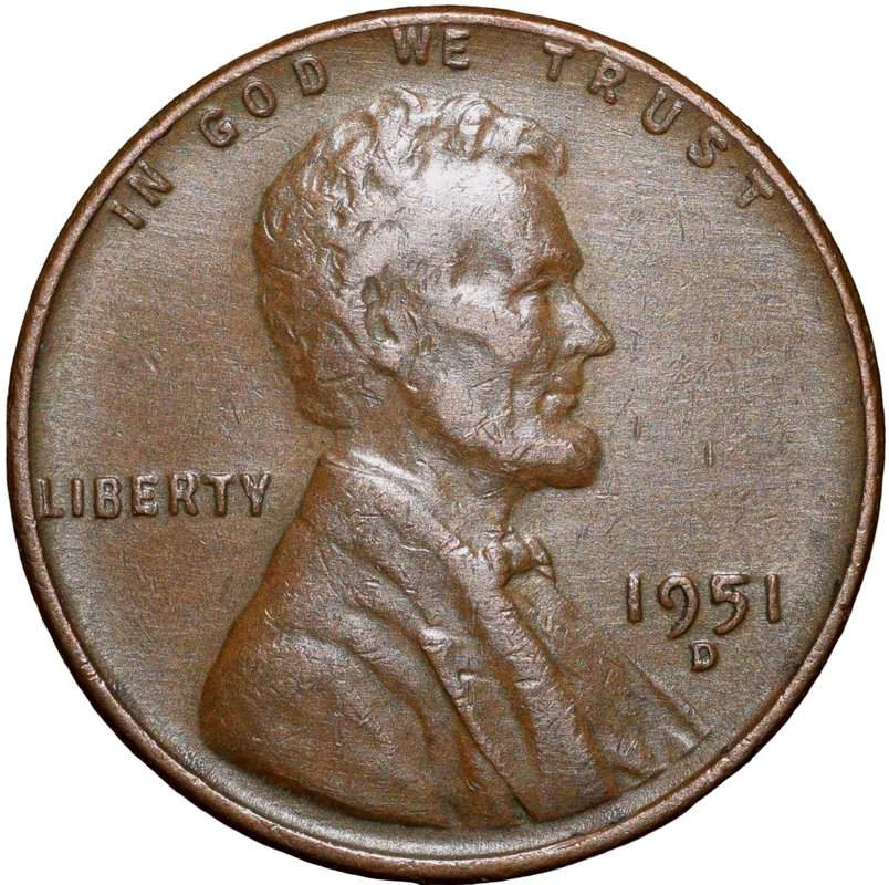 Old 1 Cent of USA (AD 1951) with Abraham Lincoln Scarce