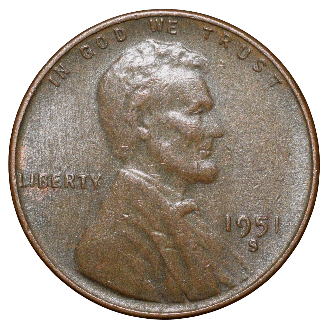 Old Bronze 1 Cent of USA (AD 1951) with Abraham Lincoln Rare